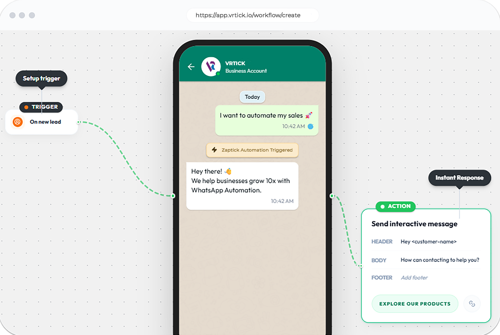 Auto-reply, qualify, and follow up on WhatsApp 24/7. Build intelligent conversation flows that convert leads while you sleep.